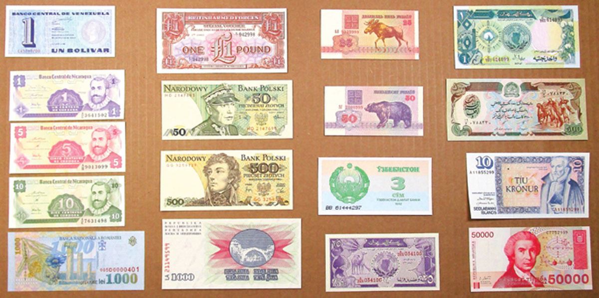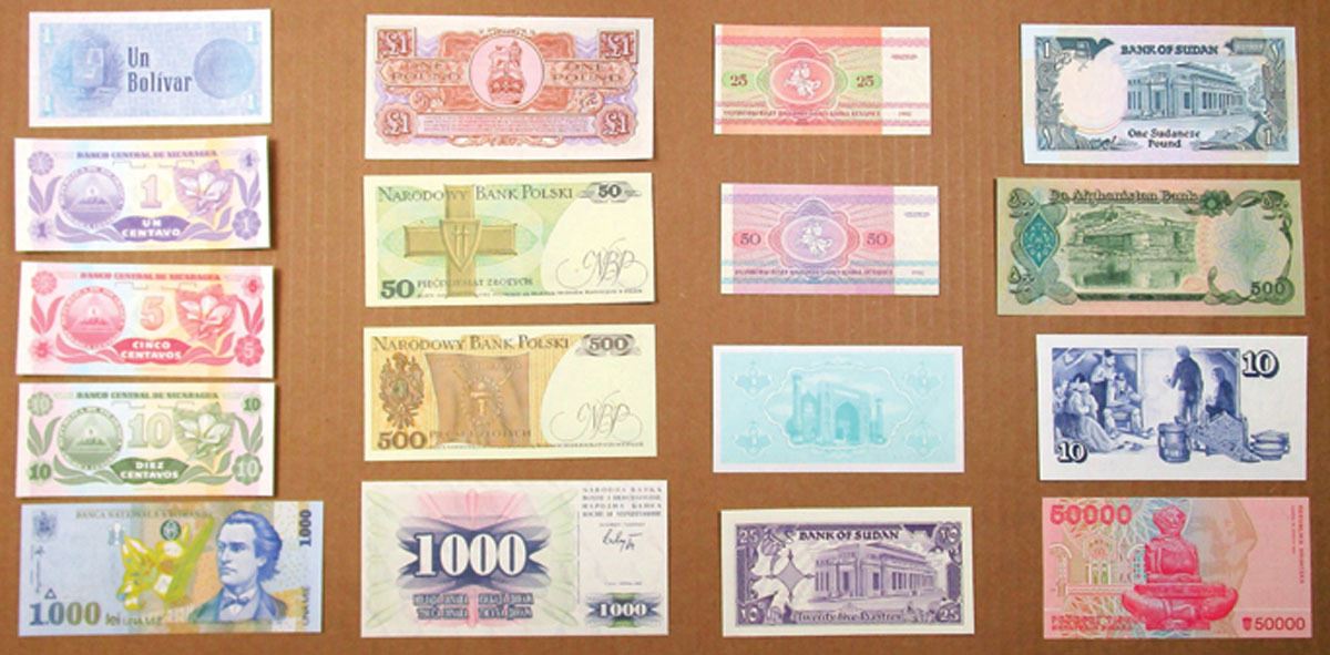 Lot of 15+ Issued Banknotes from various countries, Includes: Afghanistan, Belarus, Bosnia & Herzegovina, Britian, Croatia, Iceland, Nicaragua, Poland, Romania, Sudan, Uzbekistan, and Venezuela. Notes are AU to UNC condition. (17).