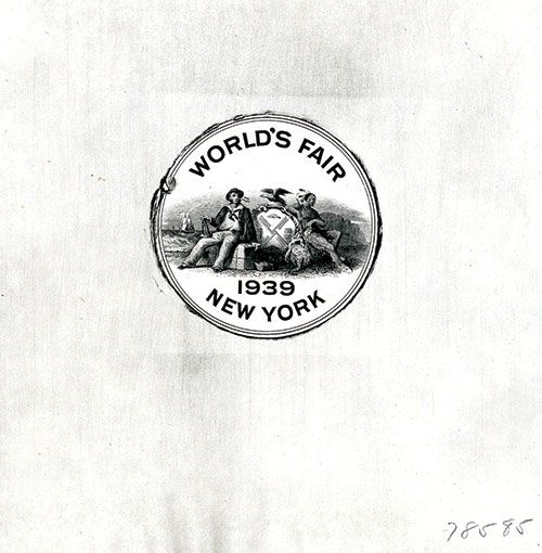 New York, 1939, 4.5 x 5.3 inches, Proof logo of the NY World's Fair. ABNC. XF to Uncirculated.
