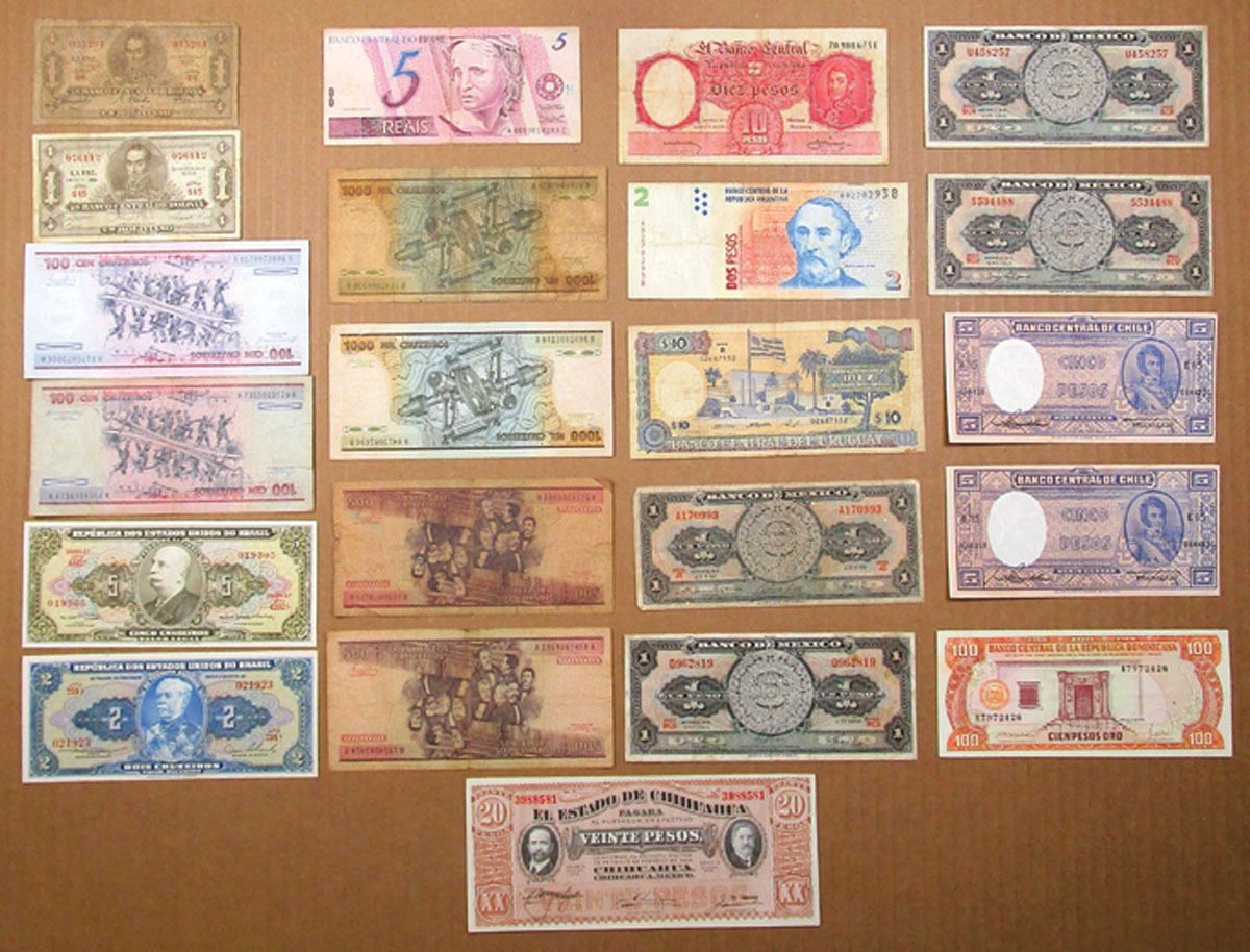 Worldwide. Mixed Group of 7 South & Central American Countries, Including Brazil, Argentina & Mexico (22) Issued Banknotes