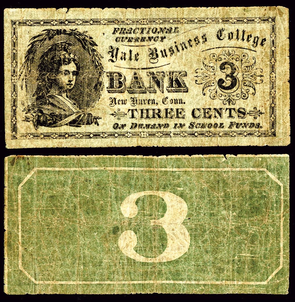 New Haven, Connecticut. ND ca.1860's, Issued college currency from this well known institution. VG to Fine condition. (ex. Smythe, June 17, 2005, Lot 5918, Sold $315)