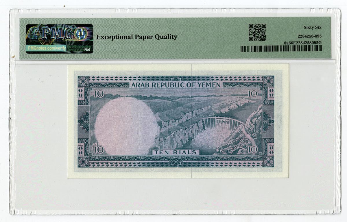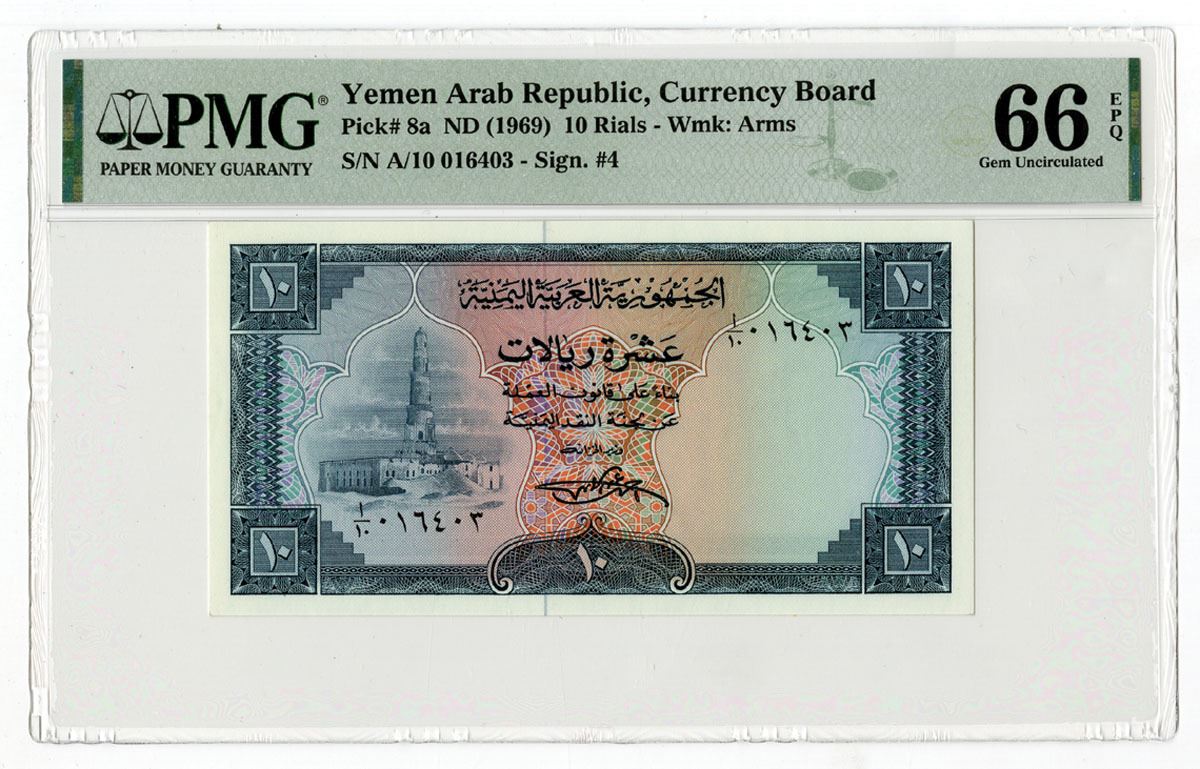 Yemen. Currency Board, ND(1969). 10 Rials, P-8a, Issued Banknote. PMG Gem Unc 66 EPQ.