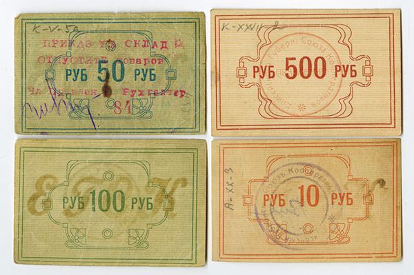 Russia. Lot includes 500 Rubles, 1922, VF-XF; 100 Rubles, 1922, VF; 50 Rubles, Fine; and 10 Rubles, 1922, Very Fine. Unlisted in the Standard Catalog.
