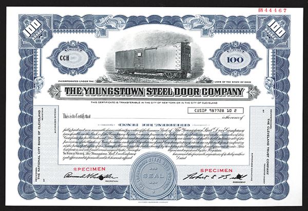 OH. 100 Shares, Specimen Stock Certificate, Olive green border, Railroad freight car, VF-XF, SBNC.