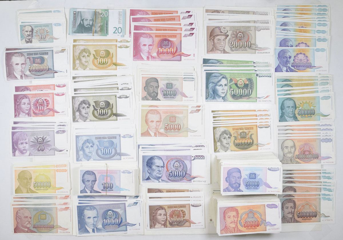 Yugoslavia...., 1980s-2000s. Lot of 500+ Issued Banknotes ranging from 5000 Dinara, P-93, to 20 Dinara, P-154. Notes are in XF to UNC condition. Please inspect, there are a number of very high grade notes in this group. (500+). Sold "AS IS" no returns accepted.