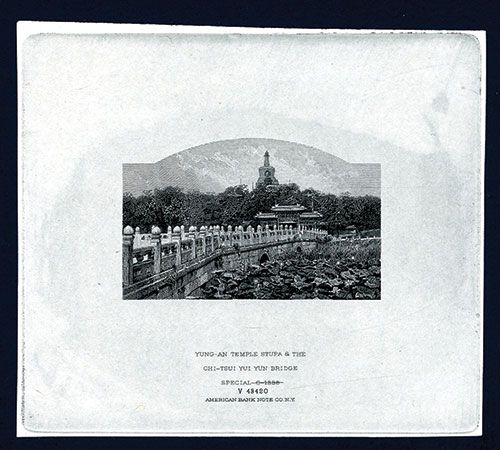 ND (ca. 1910-30), Proof vignette from ABNC production department, 103 x 93 mm's, black on india paper, Additional title at base “Special - V 48420 - American Bank Note Co.”, Choice to Gem Uncirculated condition. Rare vignette possibly considered for use on banknotes or other fiscal documents. ABNC.