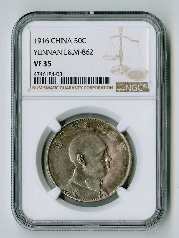 Yunnan Province, China. 50 Cents, ND (1916), Y# 480, L&M-862, NGC Graded VF 35, attractive steel gray color.