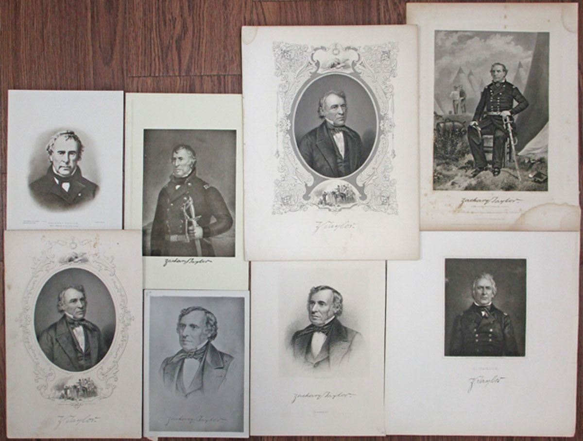 Lot of 8 pieces, all portraits of Zachary Taylor from various points in his life. Various engravers and publishers include T. B. Welch, Johnson, Fry & Co. Publishers, and H. B. Hall. All are in Fine condition with some toning, staining, and other signs of wear. Zachary Taylor (November 24, 1784 - July 9, 1850) was an American military leader who served as the 12th president of the United States from 1849 until his death in 1850. Taylor previously was a career officer in the United States Army, rose to the rank of major general and became a national hero as a result of his victories in the Mexican-American War. As a result, he won election to the White House despite his vague political beliefs. His top priority as president was preserving the Union. He died sixteen months into his term, having made no progress on the most divisive issue in Congress, slavery. (8)