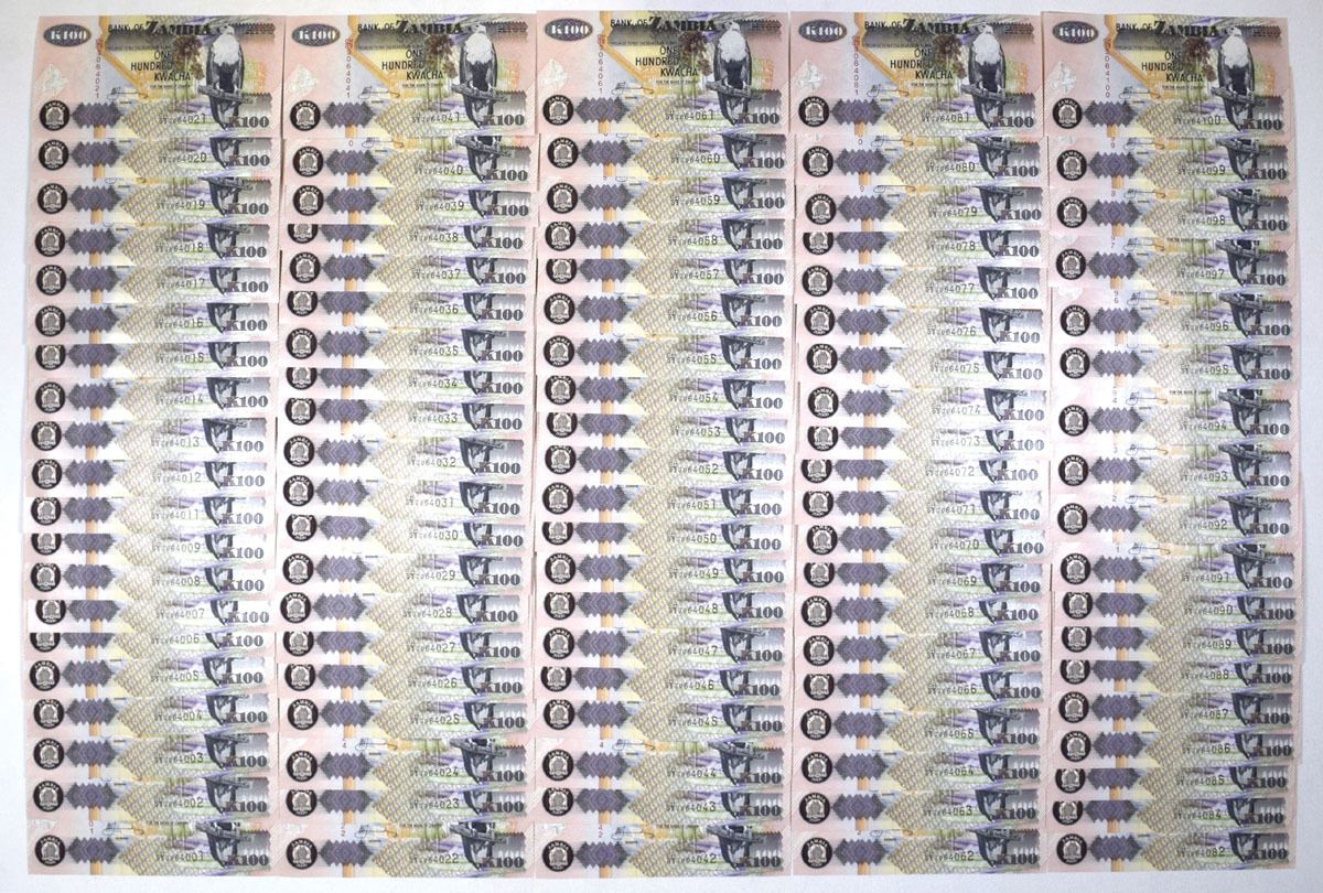 Zambia, 2006. 100 Kwacha, P-38f (98), Sequential Issued Banknotes Collection, m/c printing with bird at right and bank title at top center, S/Ns range from CH/03 3064001 to CH/03 3064100 with only 2 banknotes missing from that run, All are in Choice t Gem Uncirculated or better condition. (98). Sold "AS IS" no returns accepted.