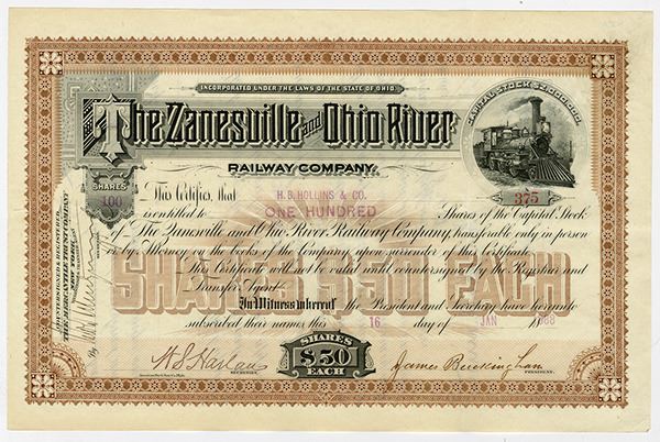 Ohio. I/U certificate for 100 shares. Black print with brown border. Locomotive at right. VF. ABNC.